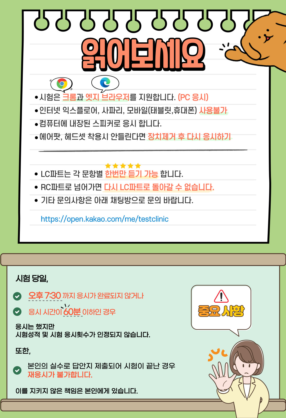 ※토익은 응시시간이 오후 5시부터 7시 30분을 유의하여야 함.