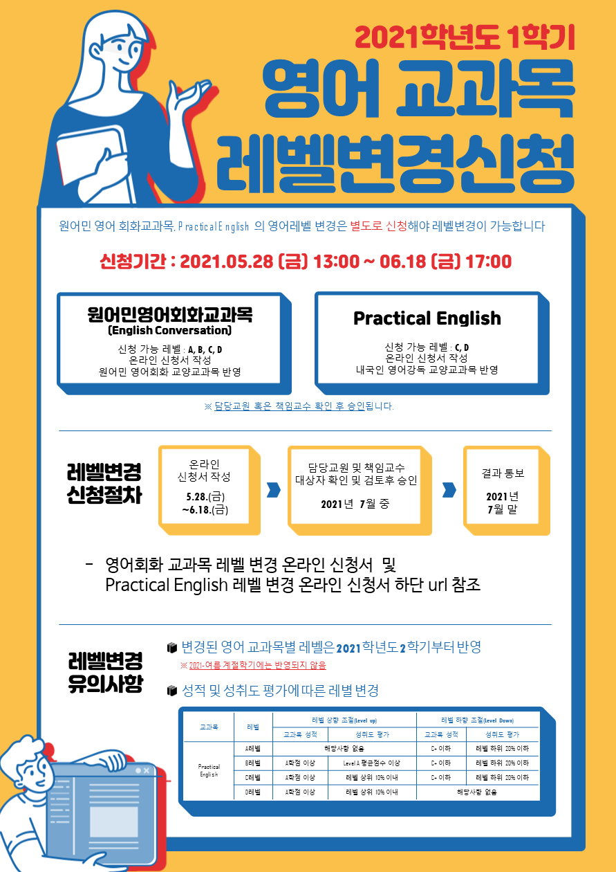 2021-1학기 기초교육(공통교육) 영어교과목 레벨 변경 신청 안내