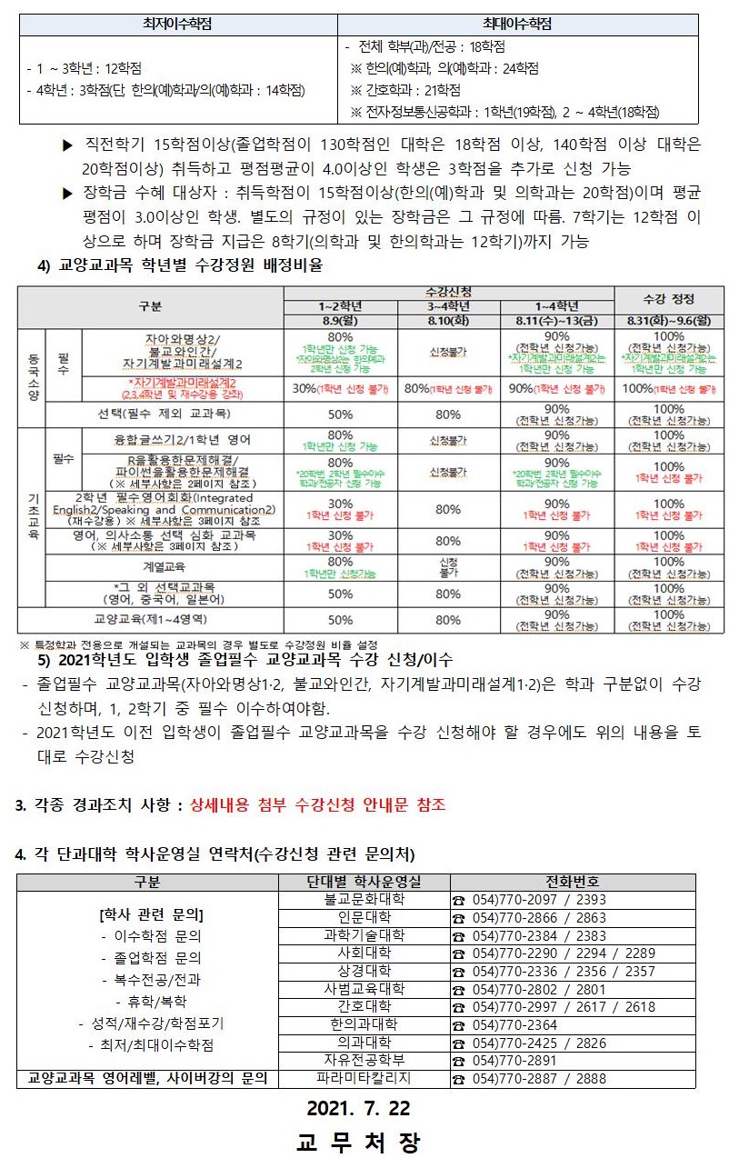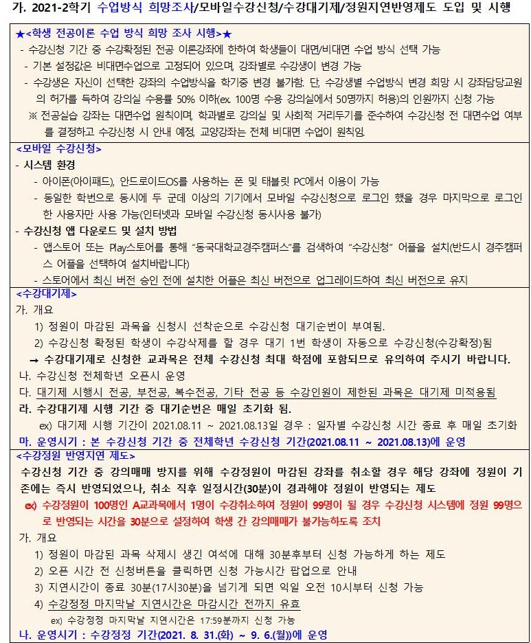 2021-2학기 수강신청 관련 주요 문의에 대한 FAQ 안내