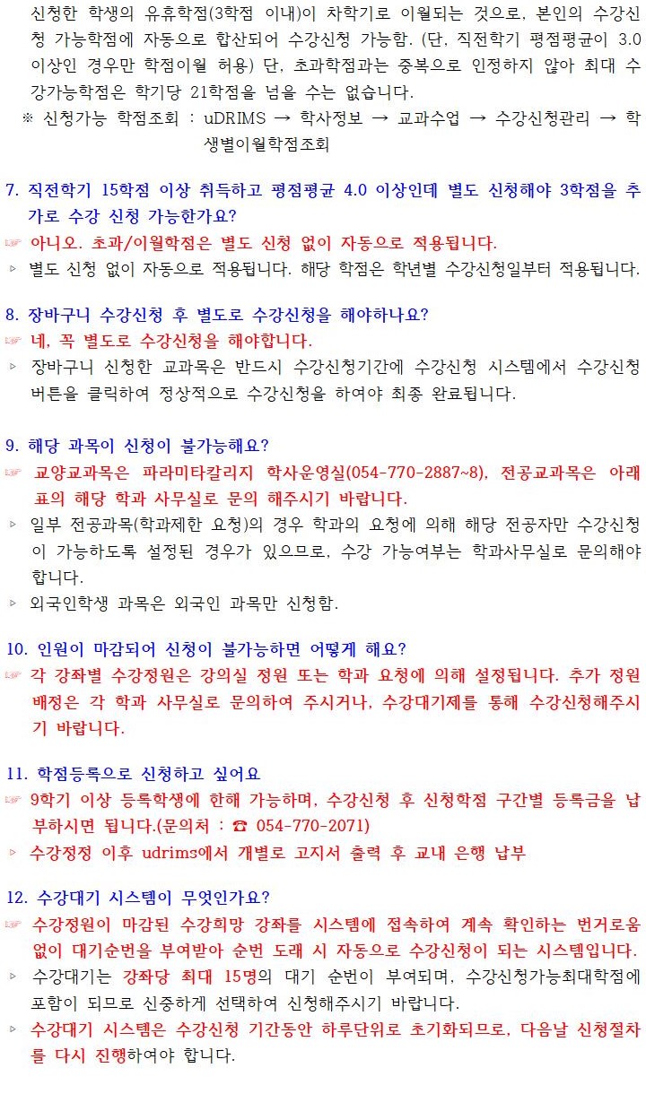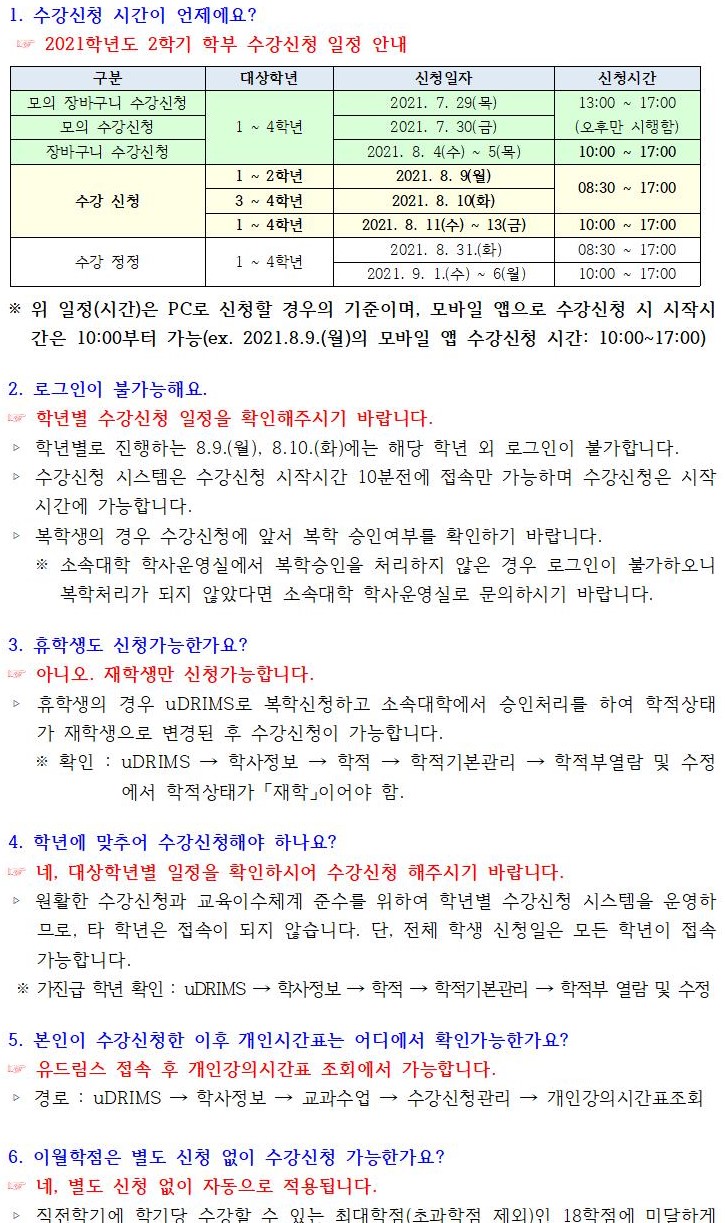 2021-2학기 수강신청 관련 주요 문의에 대한 FAQ 안내