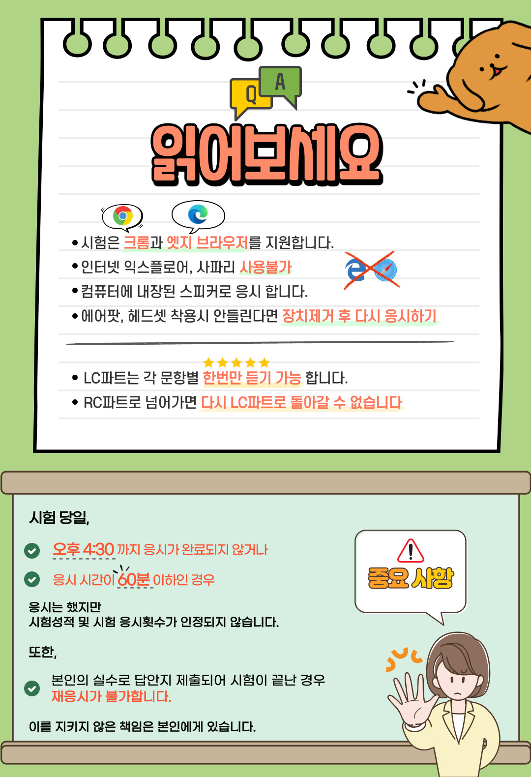 ※ 모바일 응시 및 인터넷 익스플로러로 응시할 수 없습니다. 반드시, 크롬 혹은 엣지로 접속하시기 바랍니다.