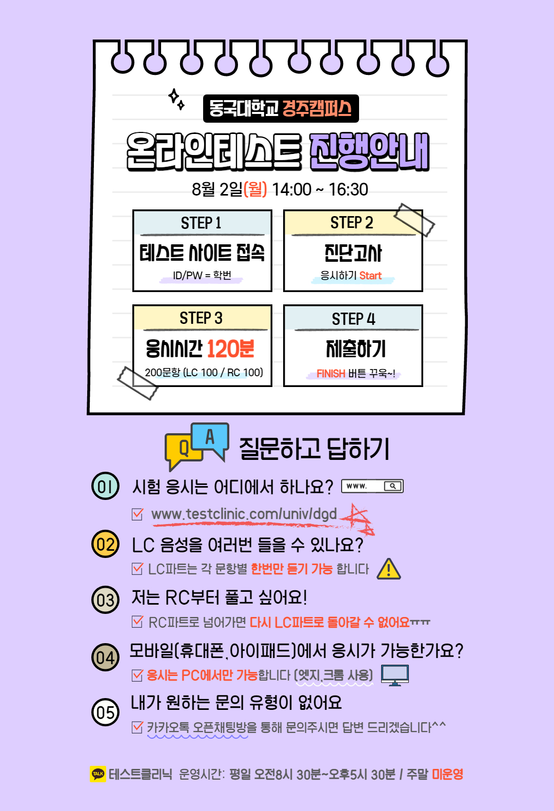 - 모의토익 응시 시험 사이트 : http://www.testclinic.com/univ/dgd