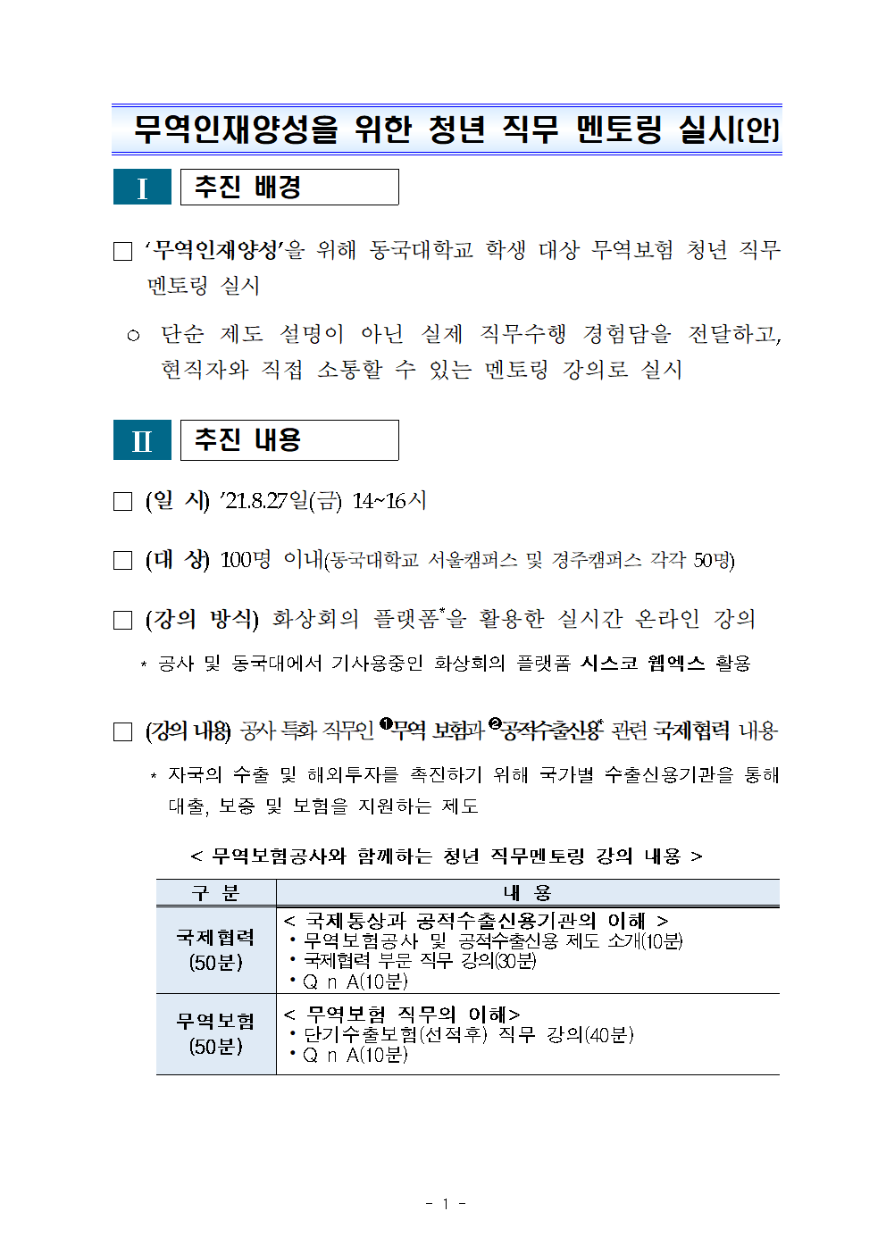 [외부/한국무역보험공사] 무역인재양성을 위한 청년 직무 멘토링 실시 안내