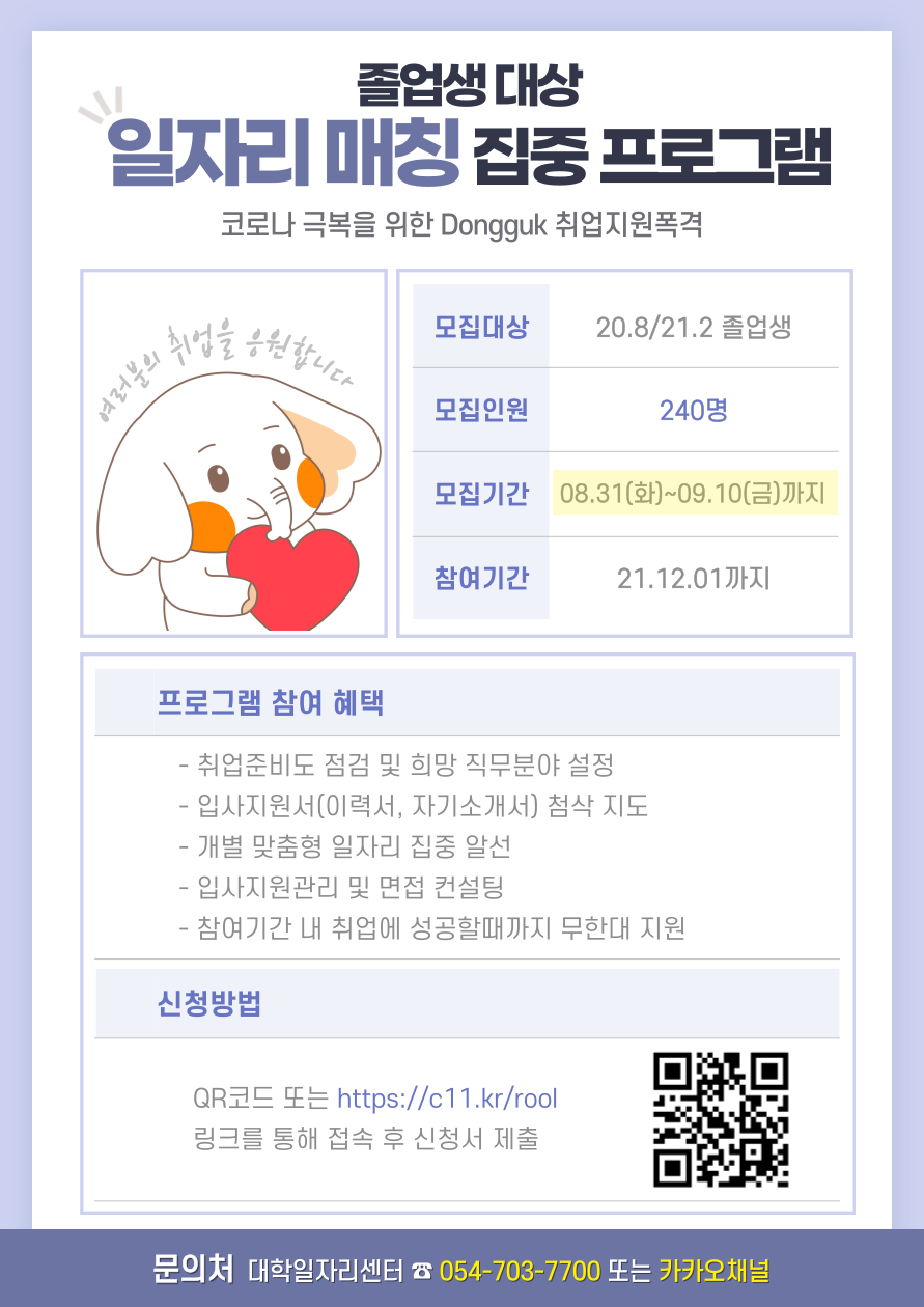 일자리 매칭 집중 프로그램 신청 바로가기 ☞ http://c11.kr/rool