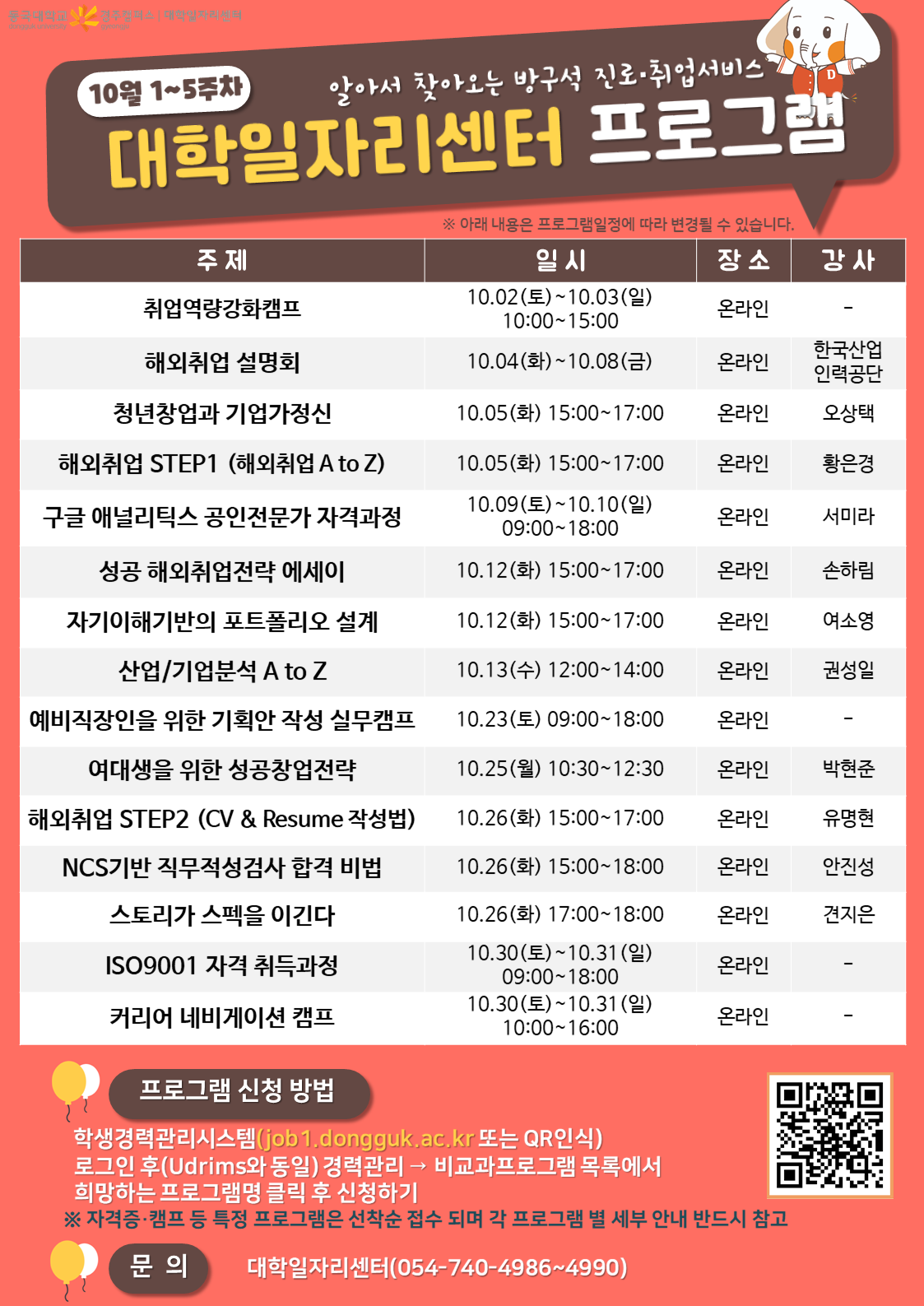 [대학일자리센터] 10월 프로그램 안내
