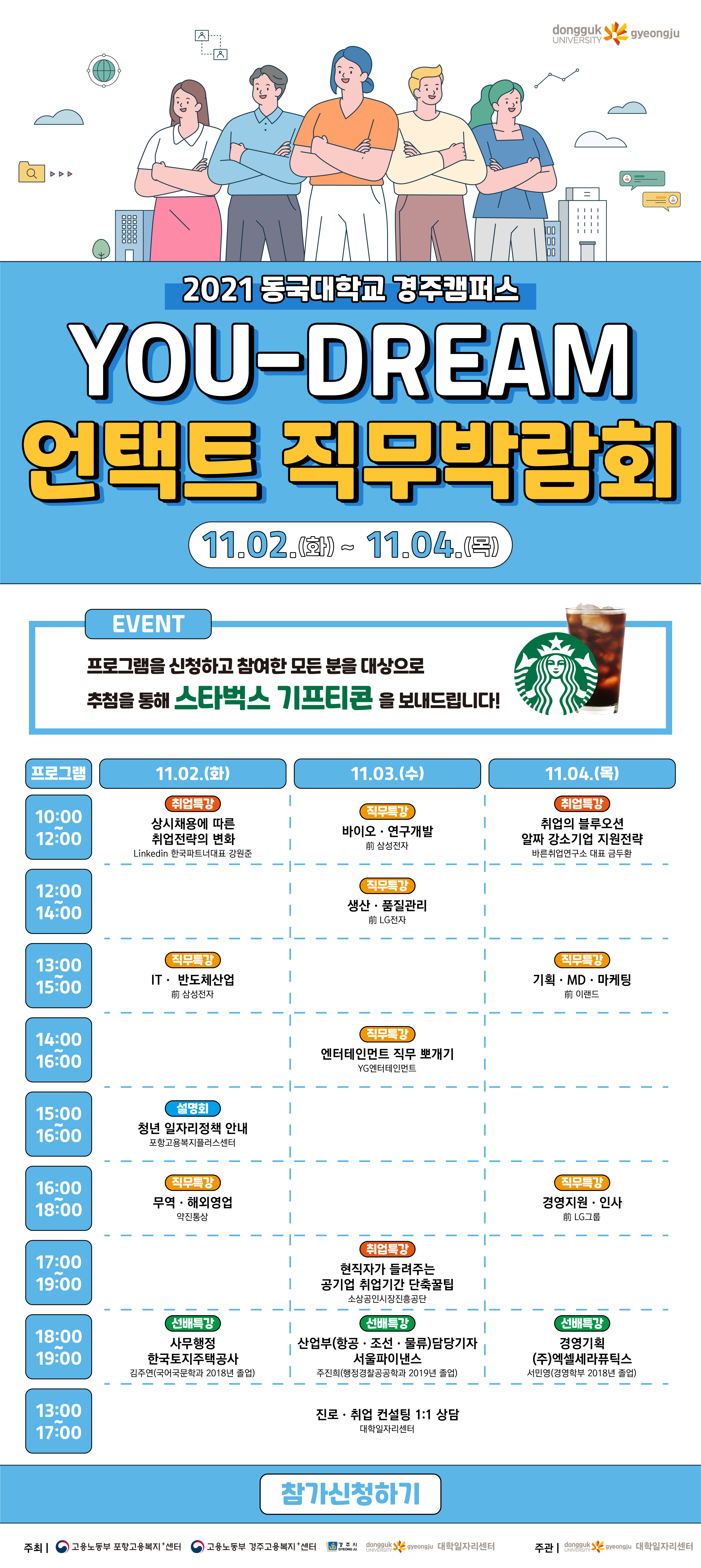 ▶ 박람회 사이트 바로가기: 2021 동국대학교 경주캠퍼스 YOU-DREAM 언택트 직무박람회 (kojob.co.kr)