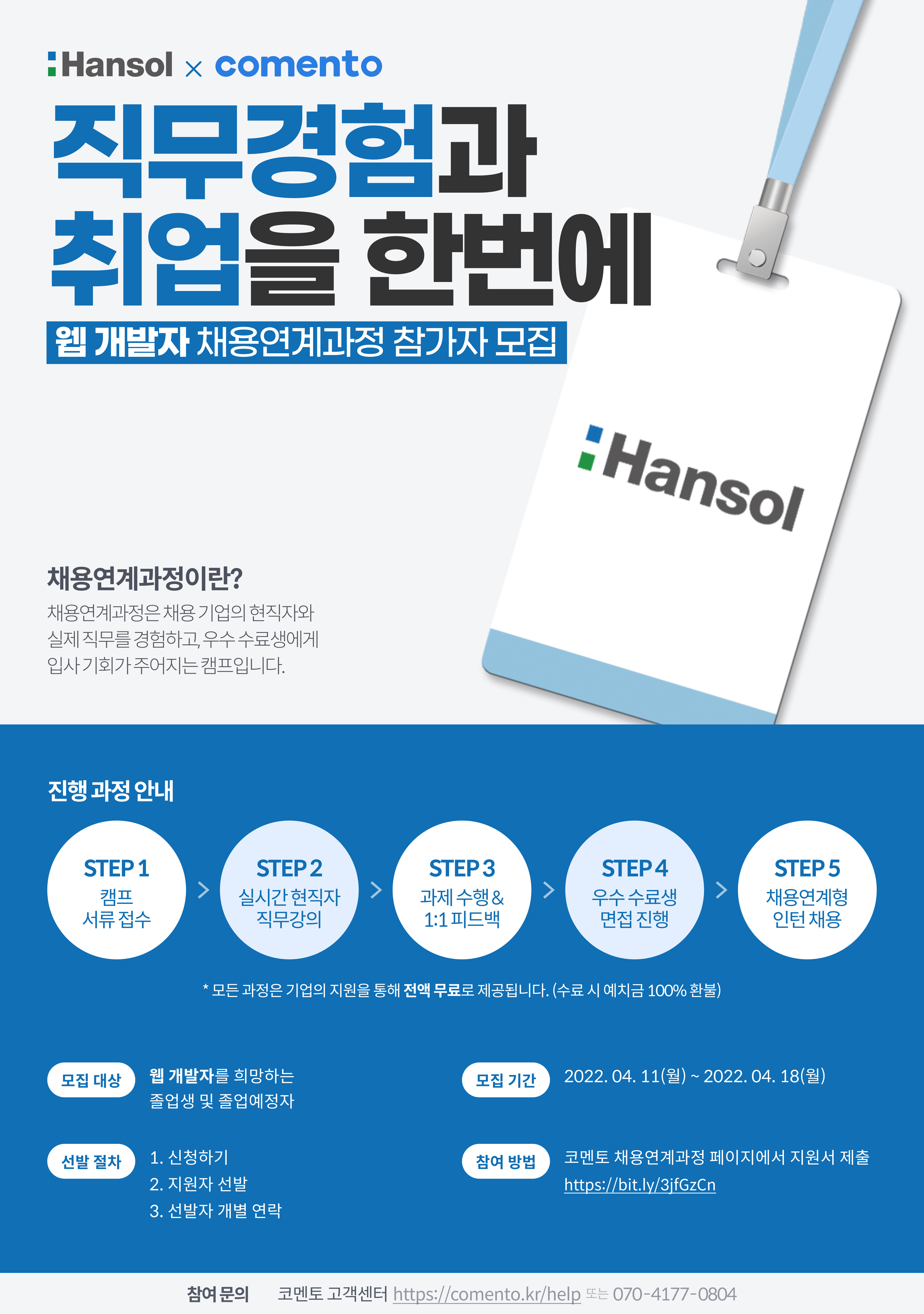 [외부/한솔x코멘토] 웹개발자 실무 경험과 취업까지 한번에! (전액무료)