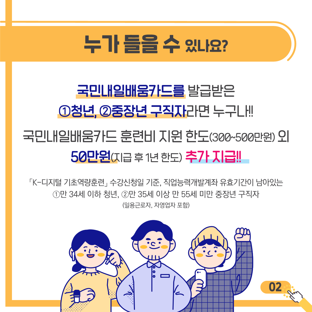 국민내일배움카드 훈련비 지원한도(300~500만원)외 50만원(지급 후 1년 한도) 추가 지급!!