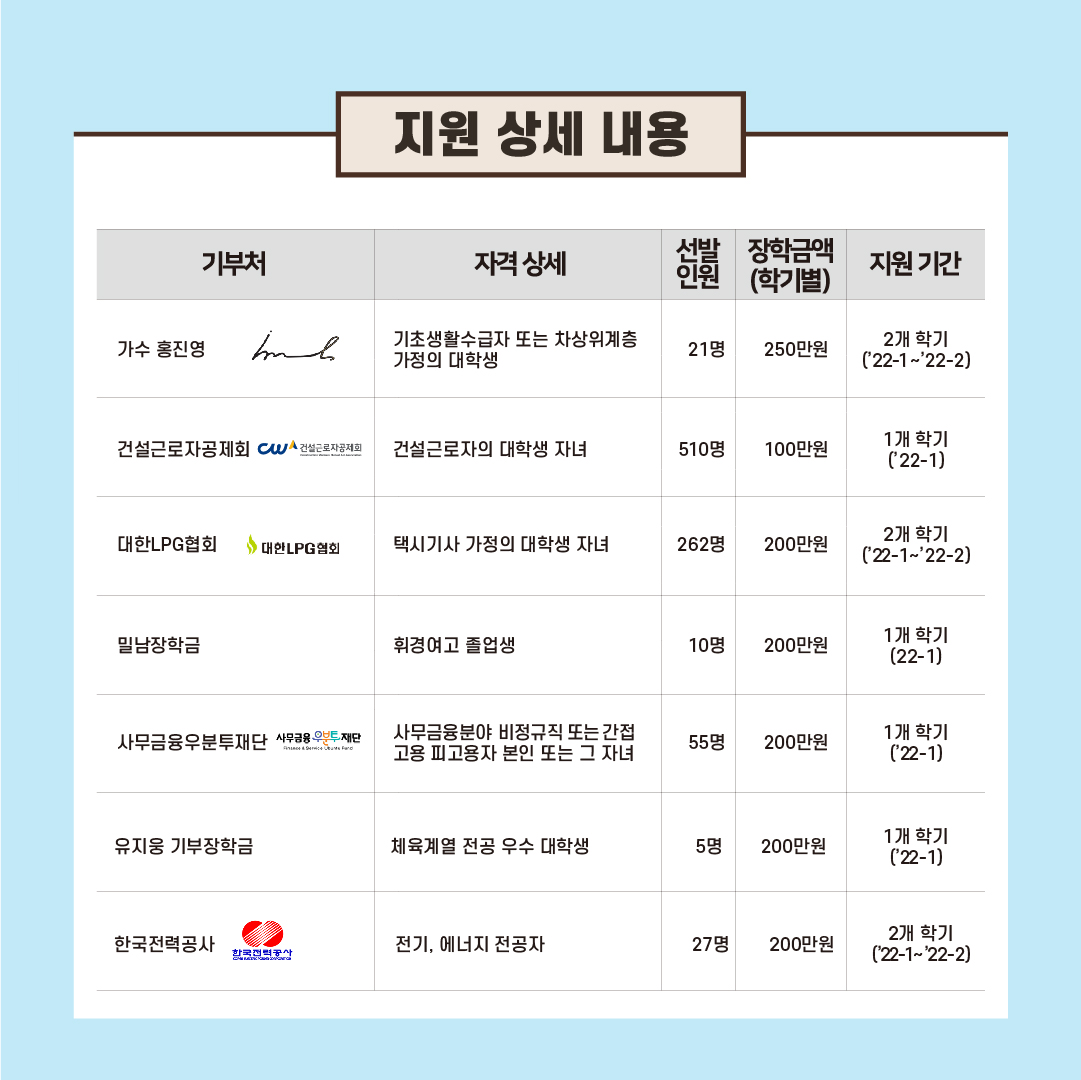 2022-1학기 푸른등대 기부장학사업 신규장학생 선발 안내