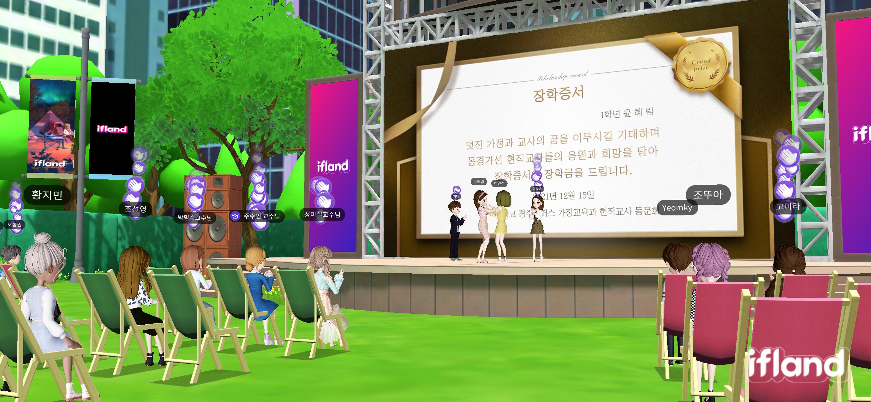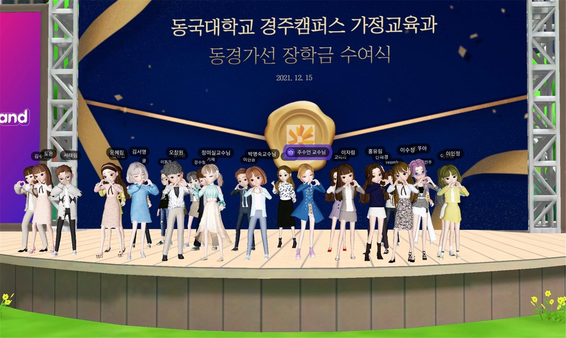 동국대 경주캠퍼스 가정교육과가 지난 15일 메타버스 플랫폼 이프랜드(ifland)에서 ‘현직교사동문회(동경가선) 장학금 수여식’을 개최했다