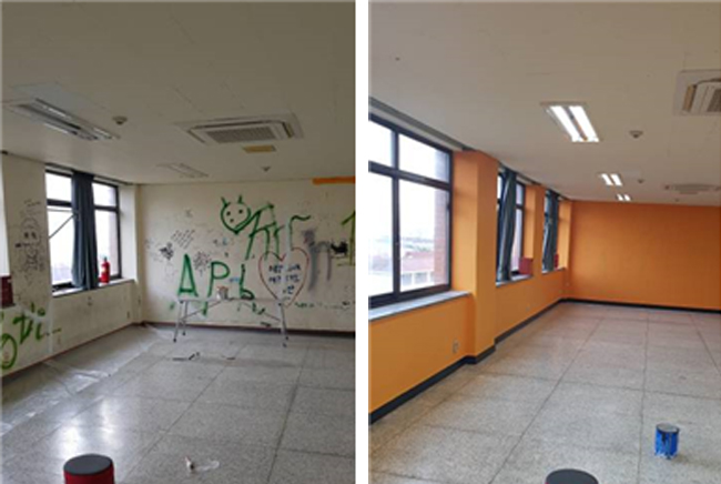 주요 개선 사항은 △교내 방역 작업 △학생회관 동아리방(불교학생회실, 동아리연습실) △조경학과 실습실 정비 작업△사라림 입구 페인트 칠 △자연과학관 1층 분자생물학 연구실 페인트 칠 △자연과학관 1층 실험실 칸막이 철거 △사라림 공양동 지붕 판넬 실리콘 방수 작업 △중앙분리대 조형소나무 전정 작업 등이다.