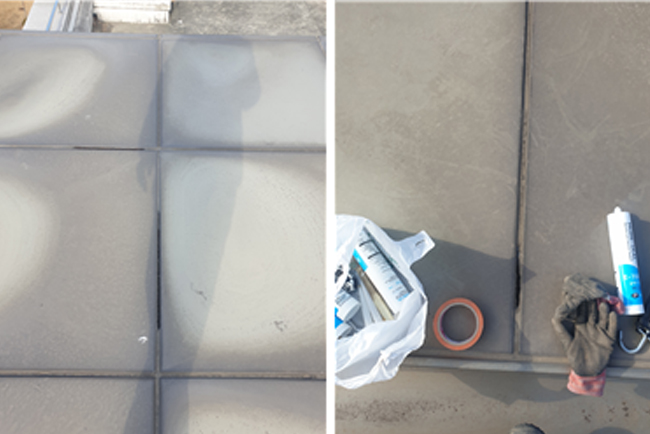 사라림 공양동 지붕 판넬 실리콘 작업 중/후