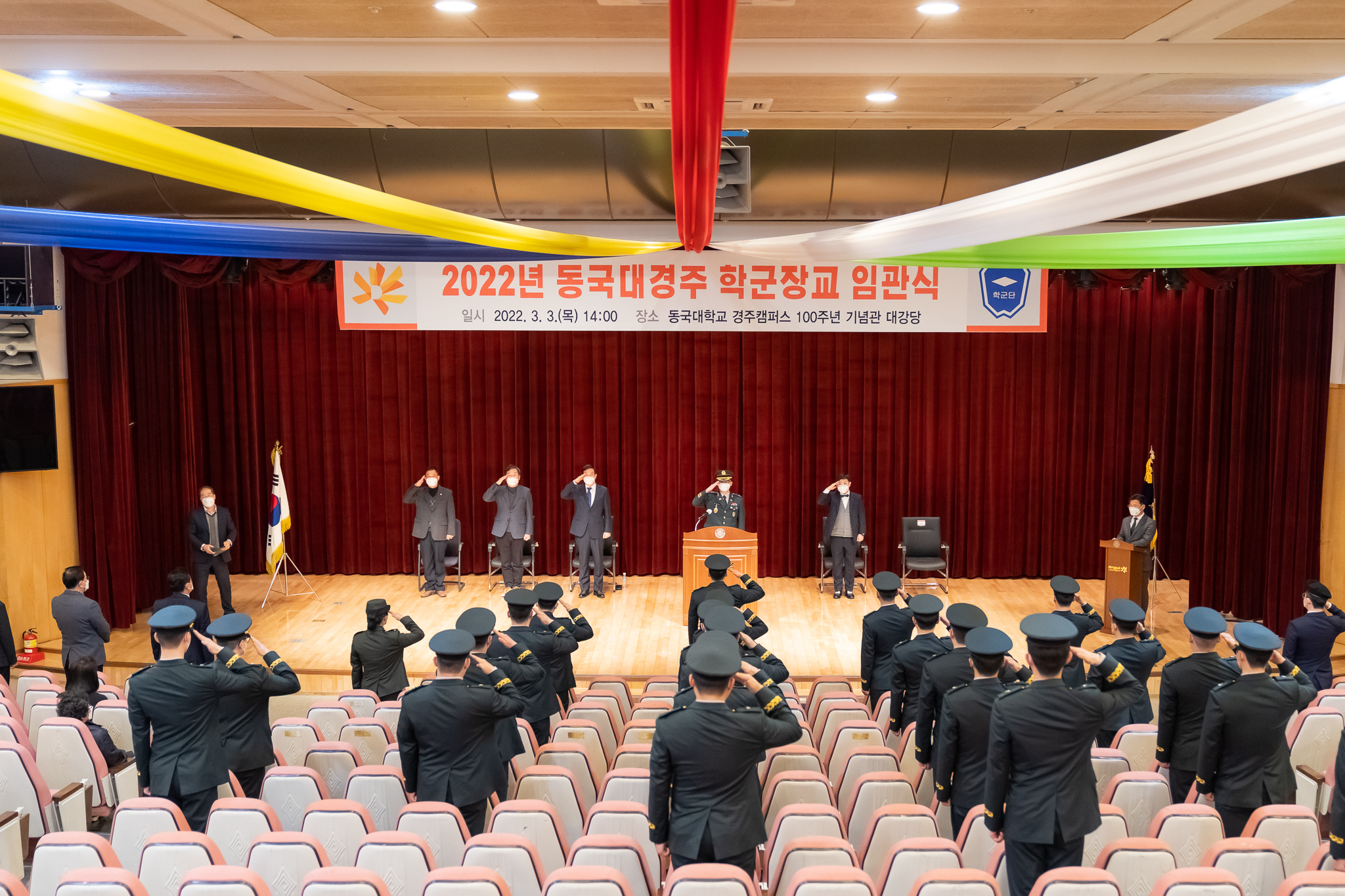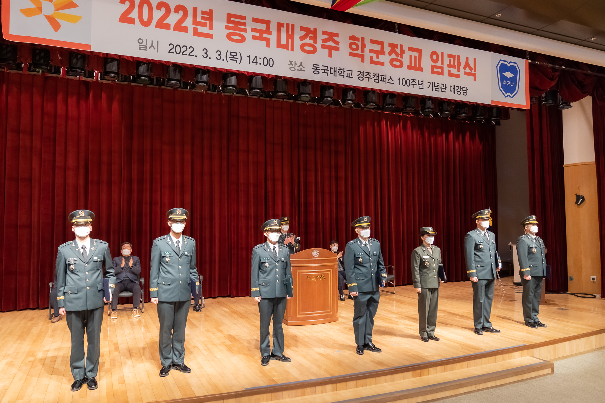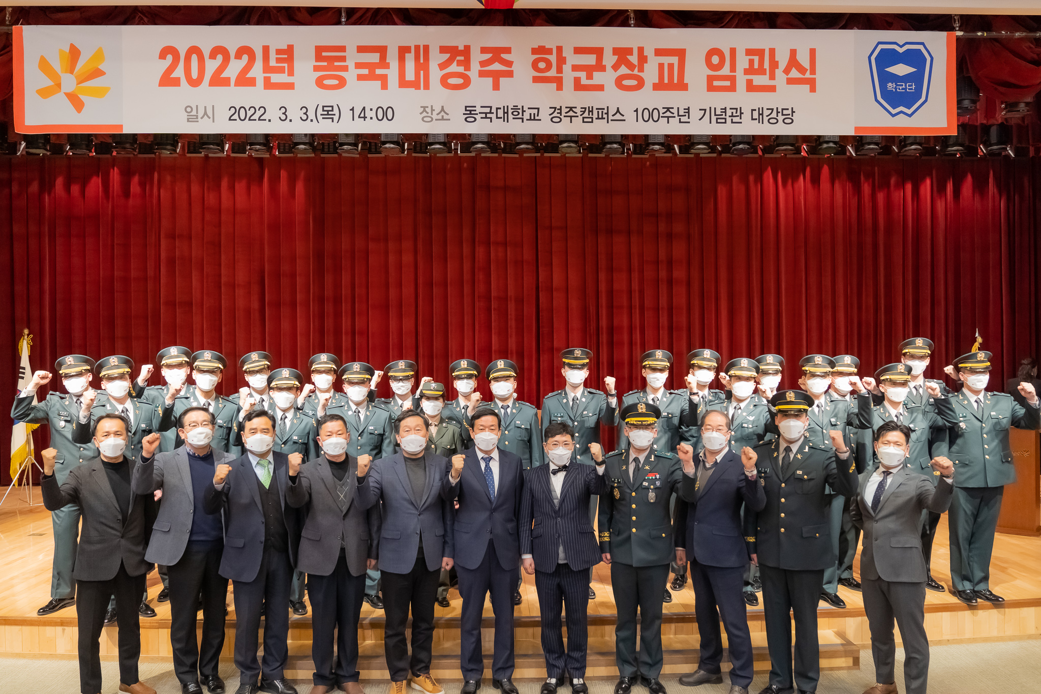 동국대학교 경주캠퍼스 제1121 학생군사교육단은 지난 3일 교내 백주년기념관 대강당에서 ‘2022년 학군장교 임관식’을 거행했다.