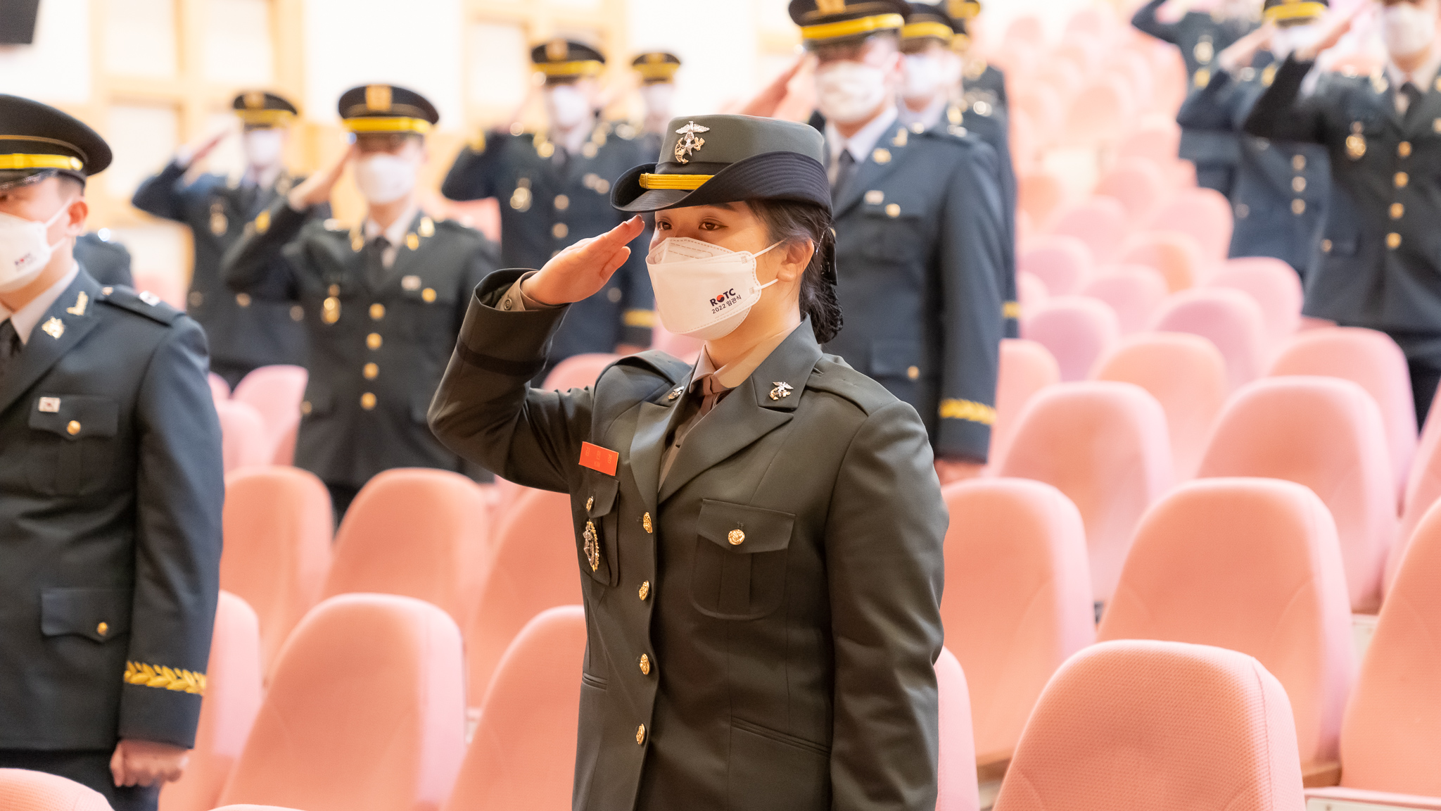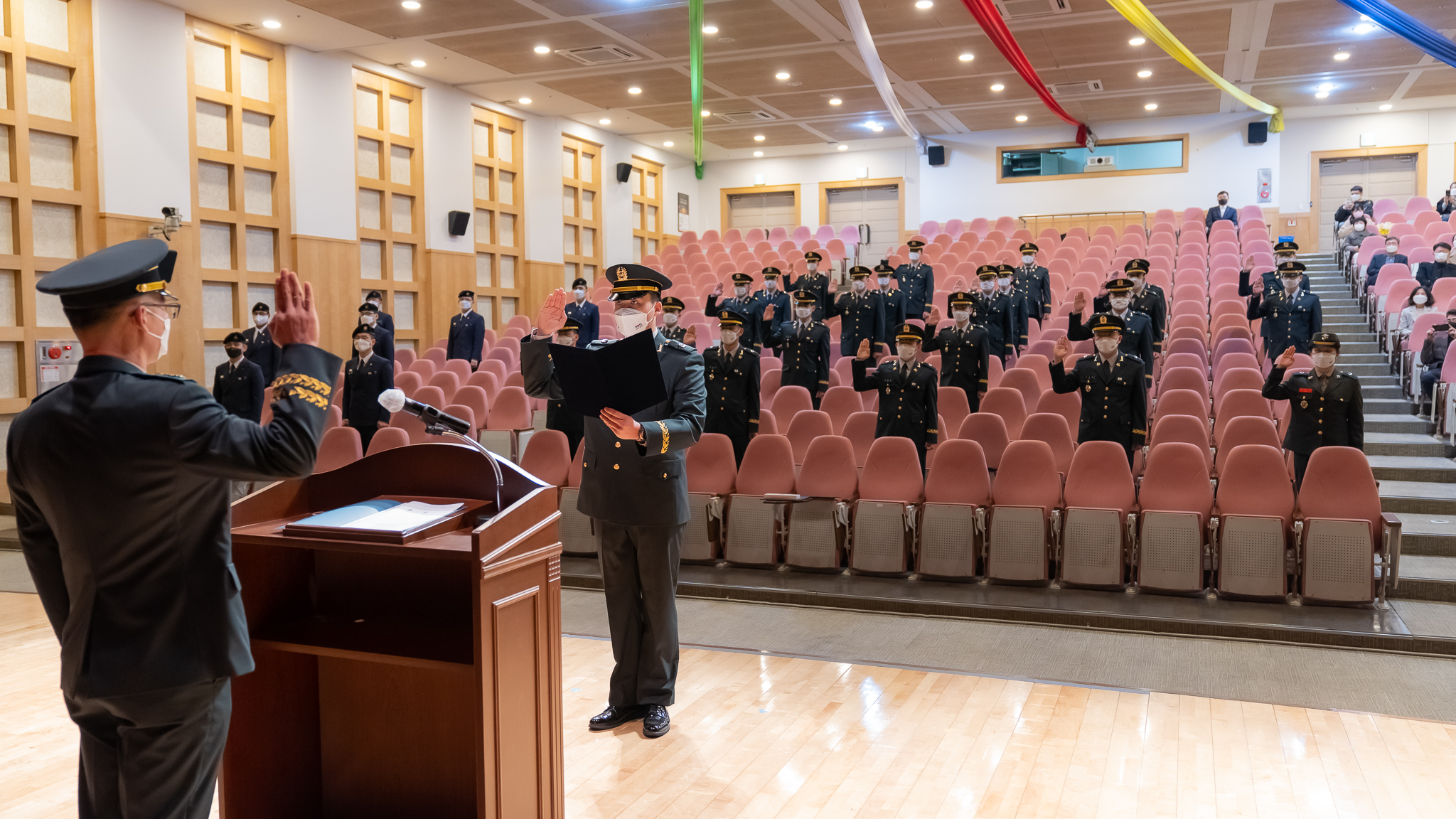 이영경 동국대 경주캠퍼스총장 대신해 참석한 이홍천 동국대 경주캠퍼스 비서실장은 “이제는 신임 장교 여러분들이 학군 장교단의 빛나는 명예와 전통을 이어나가야 한다.”라며 “국가와 국민을 위해 충성을 다하고, 헌법과 법규를 준수하며 부여된 직책과 임무를 성실히 수행해달라”고 당부했다.