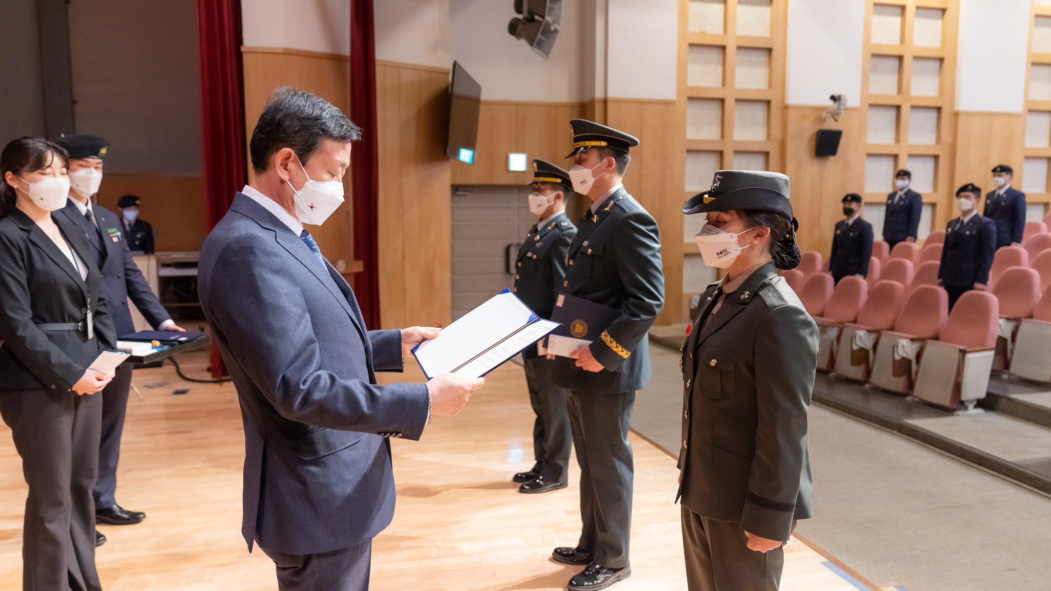 이날 임관식에서는 ▲육군참모총장상 배건호(호텔관광외식경영학부) ▲동국대 경주캠퍼스총장상 한예준(고고미술사학) ▲육군학생군사학교장상 강호원(경영학부) 등 후보생 기간 중 남다른 노력과 성과를 나타낸 임관 장교에 대한 시상이 있었다.