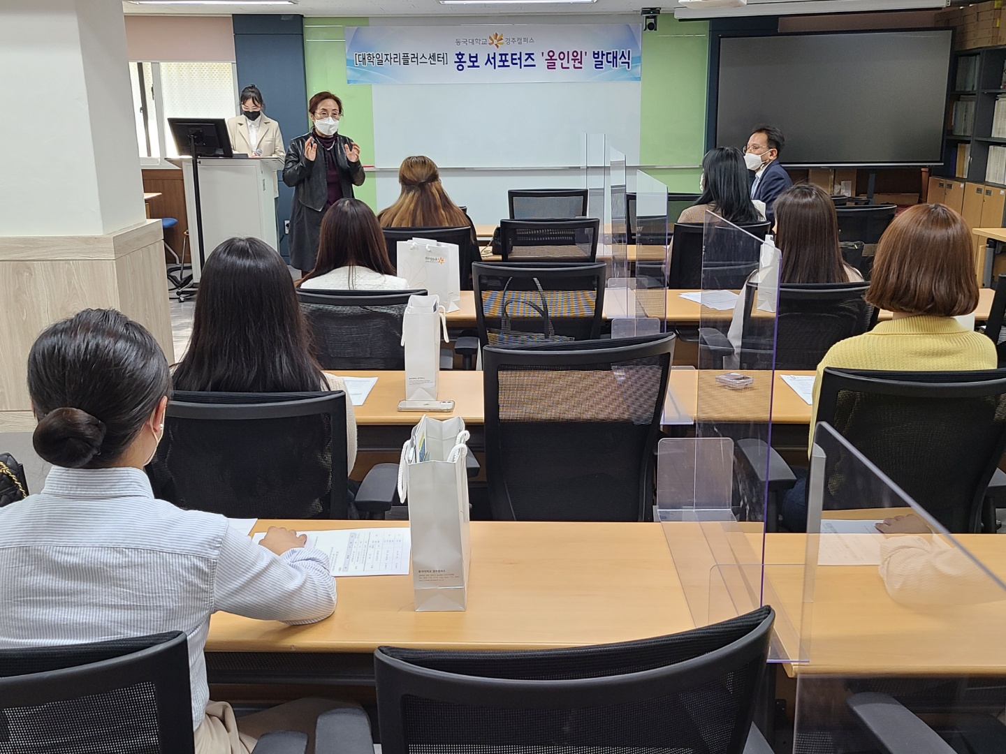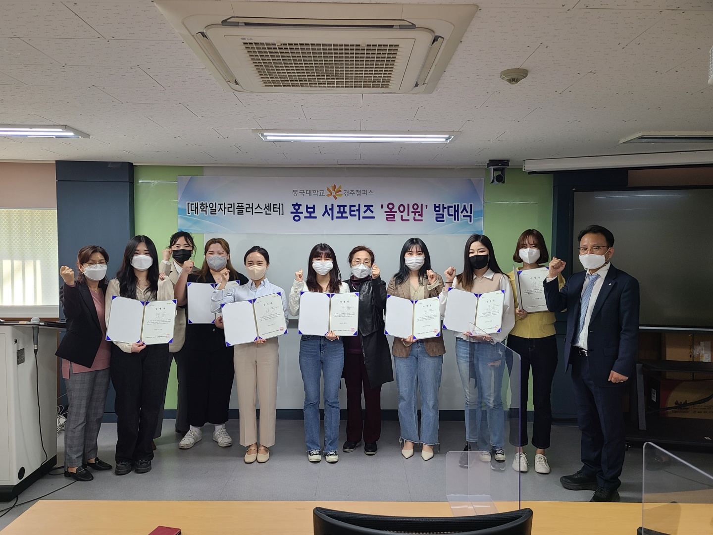 동국대학교 경주캠퍼스 대학일자리플러스센터(센터장 김인홍)는 지난 12일 원효관 교수학습세미나실에서 2022년도 대학일자리플러스센터 홍보 서포터즈 ‘올인원 1기’ 발대식을 개최했다.