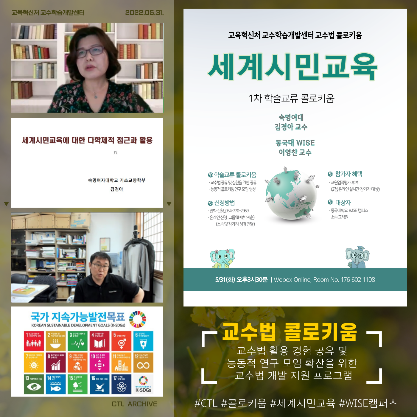 동국대 WISE(와이즈)캠퍼스 교수학습개발센터는 5월 31일 세계시민교육을 주제로 교수법 콜로키움 행사를 개최했다.