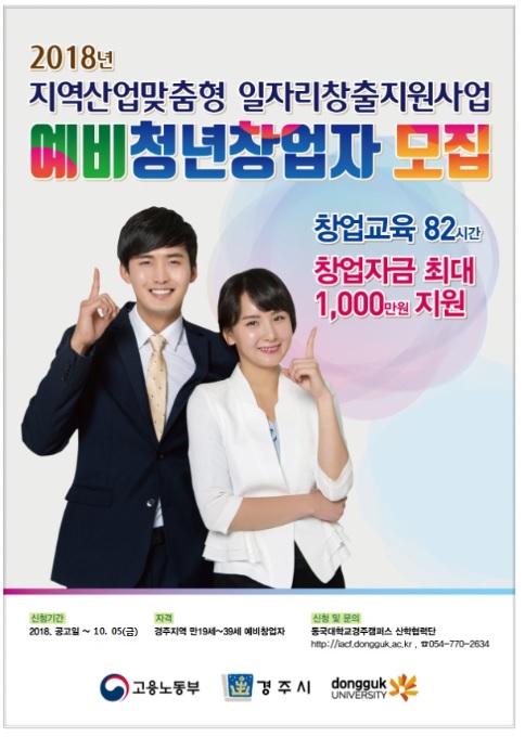 2018년 지역산업맞춤형 일자리창출지원사업[예비청년창업자 최대 1,000만원지원]