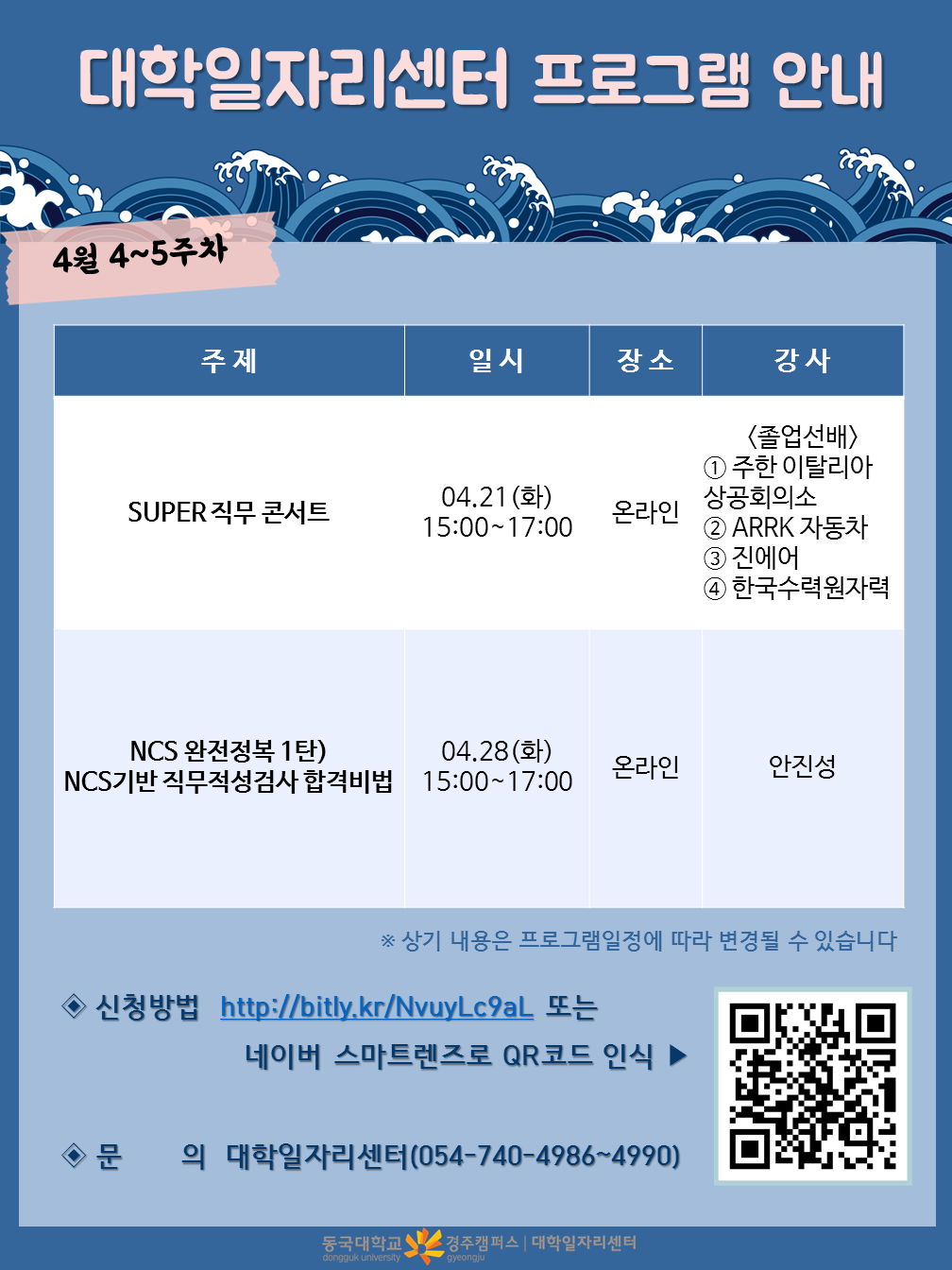 ■ 온라인기반 비교과프로그램 사전신청 접수 : http://bitly.kr/NvuyLc9aL