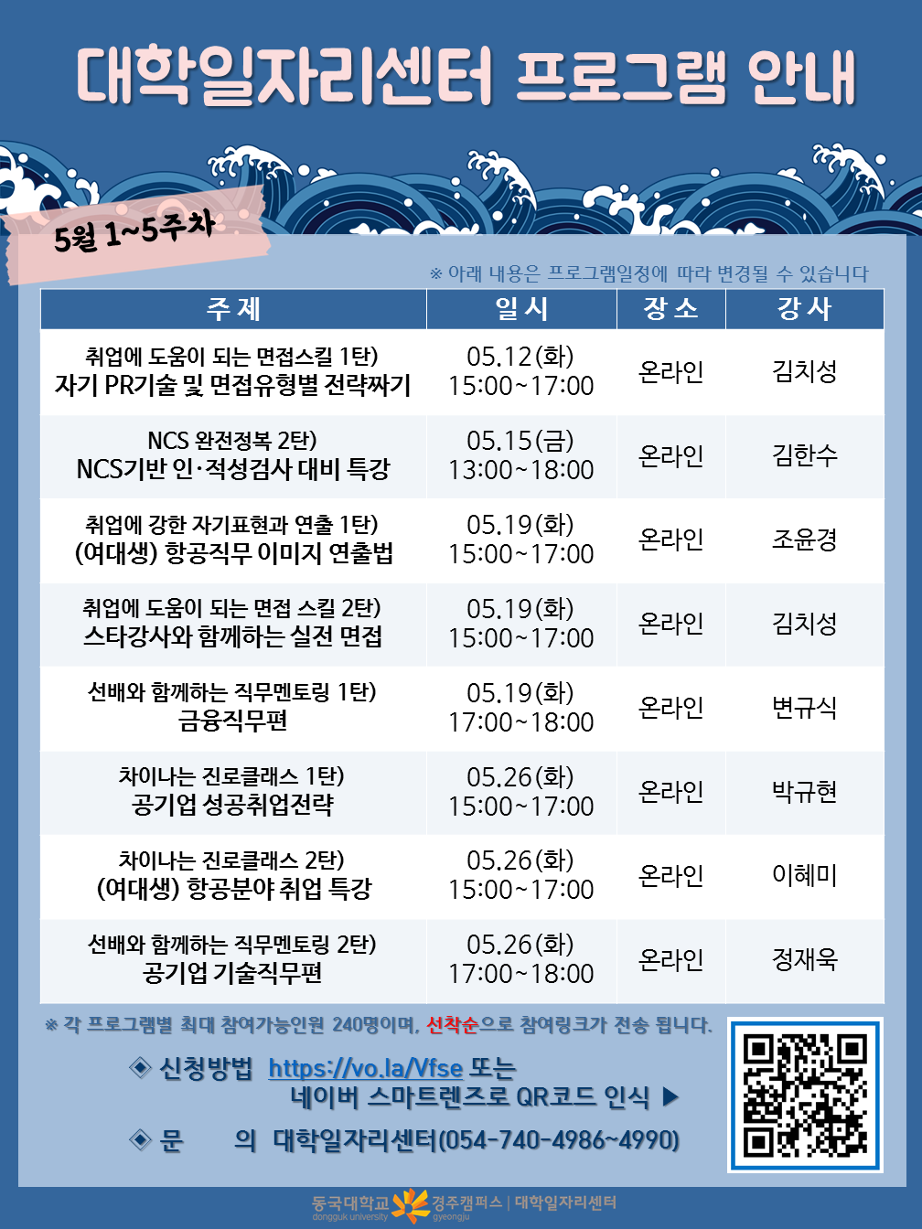 ■ 온라인기반 비교과프로그램 사전신청 접수 : https://vo.la/Vfse