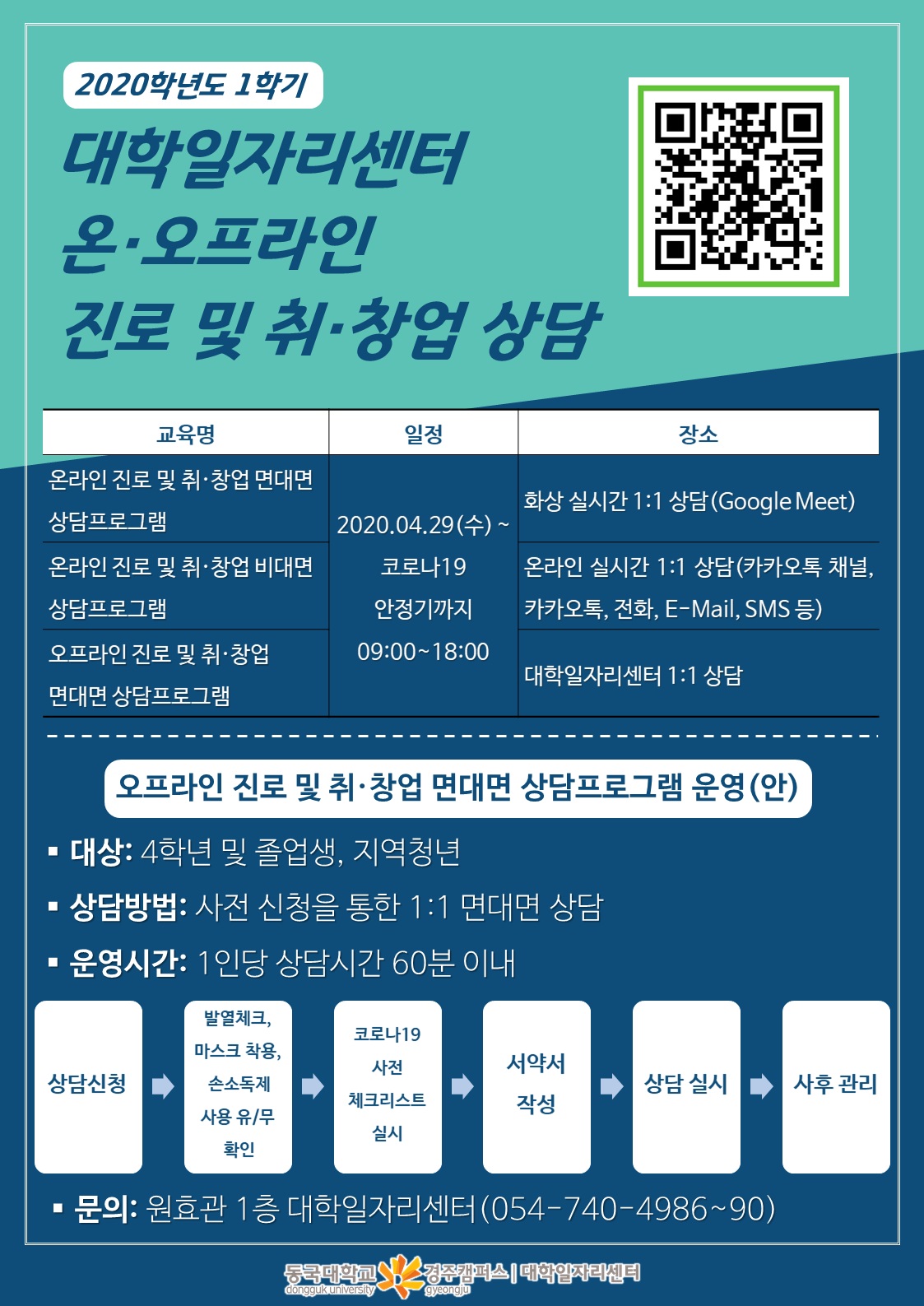 [대학일자리센터] 코로나19관련 2020학년도 1학기 온·오프라인 진로 및 취·창업 상담 운영 계획