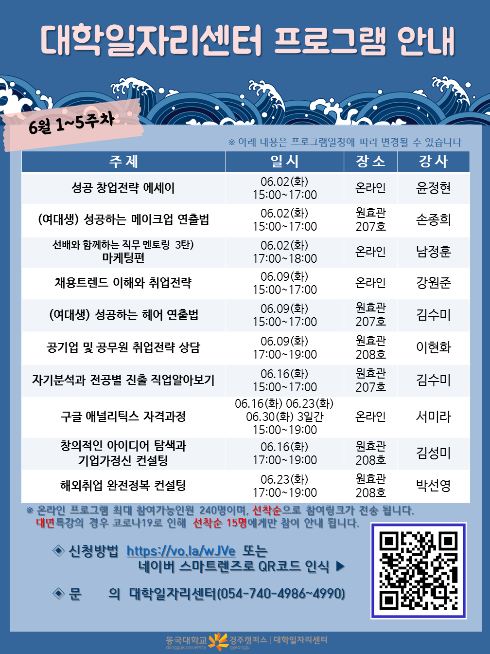 ■ 온라인기반 비교과프로그램 사전신청 접수 : https://vo.la/wJVe