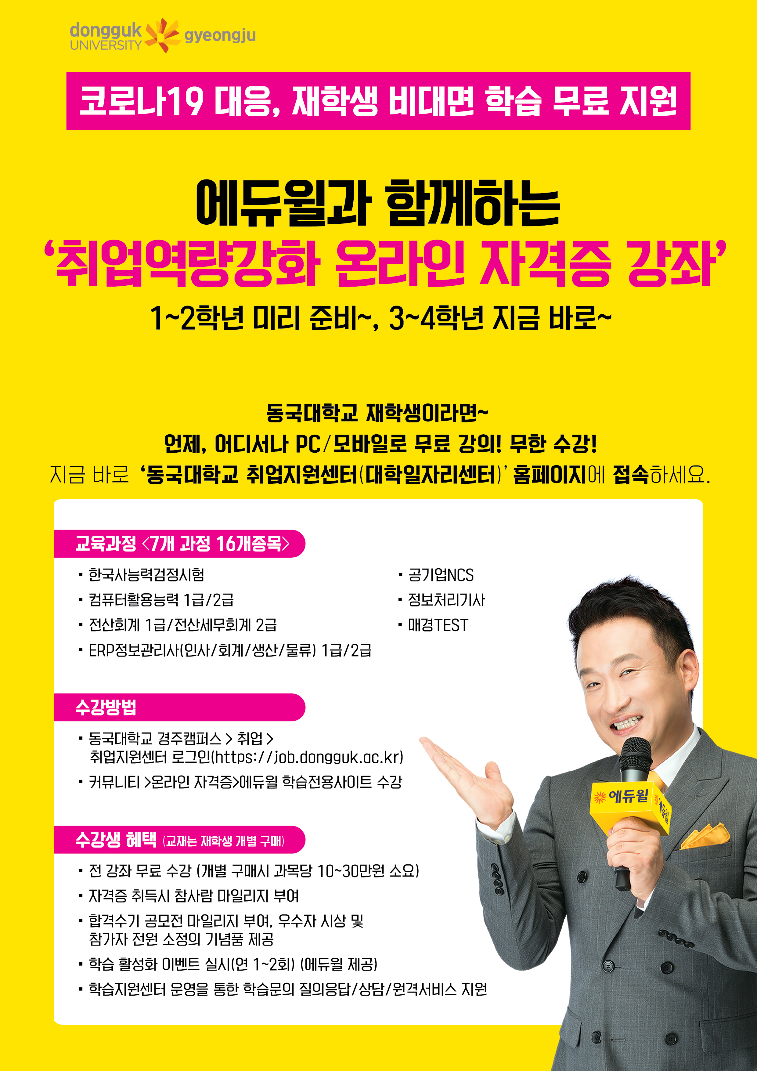 [대학일자리센터] 코로나19 대응 재학생 비대면 “취업역량강화 온라인 자격증 무료 강좌” 이벤트 안내