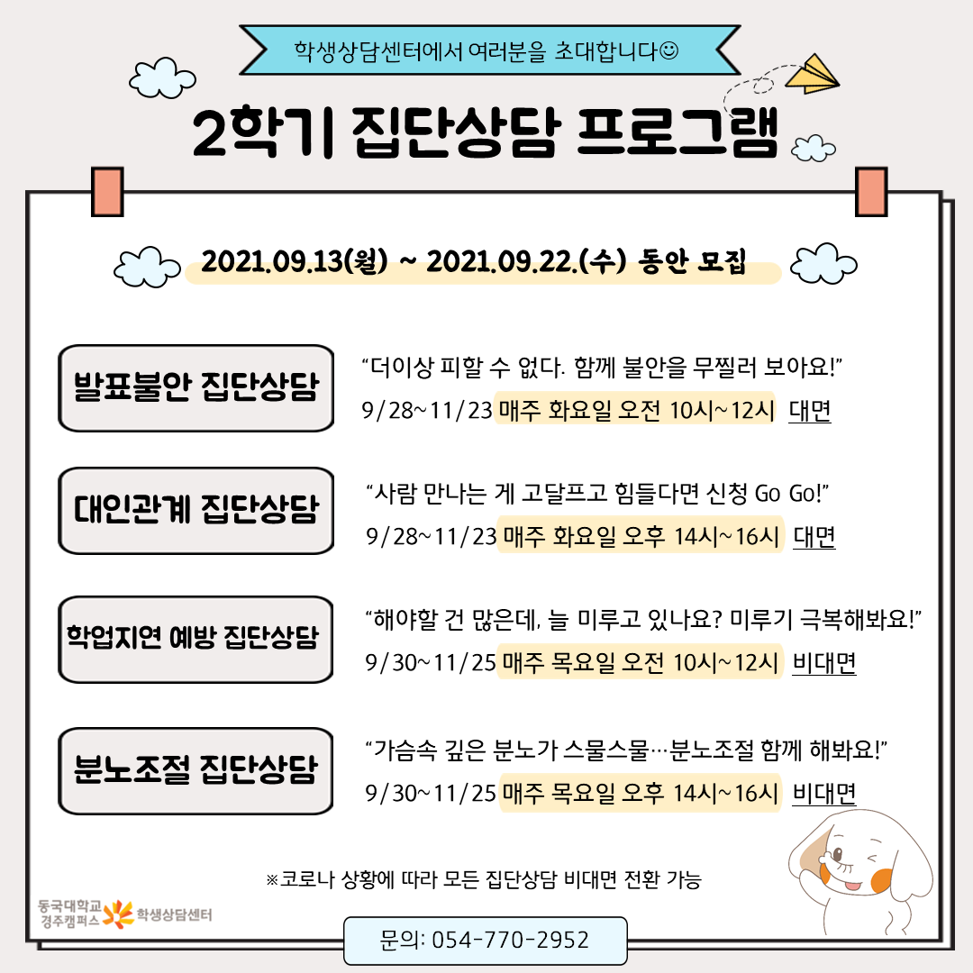 [학생상담센터] 2021학년도 2학기 집단상담 참가자 모집!