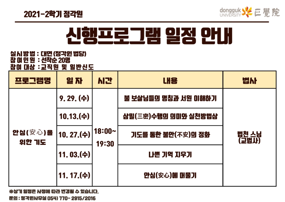 [정각원] 2021-2학기 교직원 신행프로그램 안내