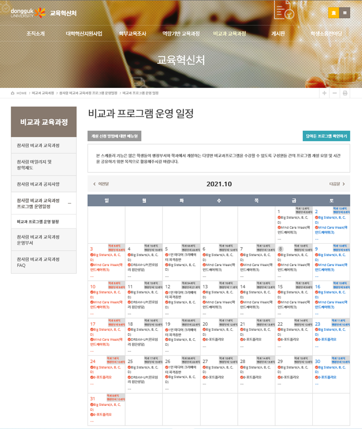 - 상세경로 : 교육혁신처 홈페이지 > 비교과 교육과정 > 비교과 프로그램 운영 일정
