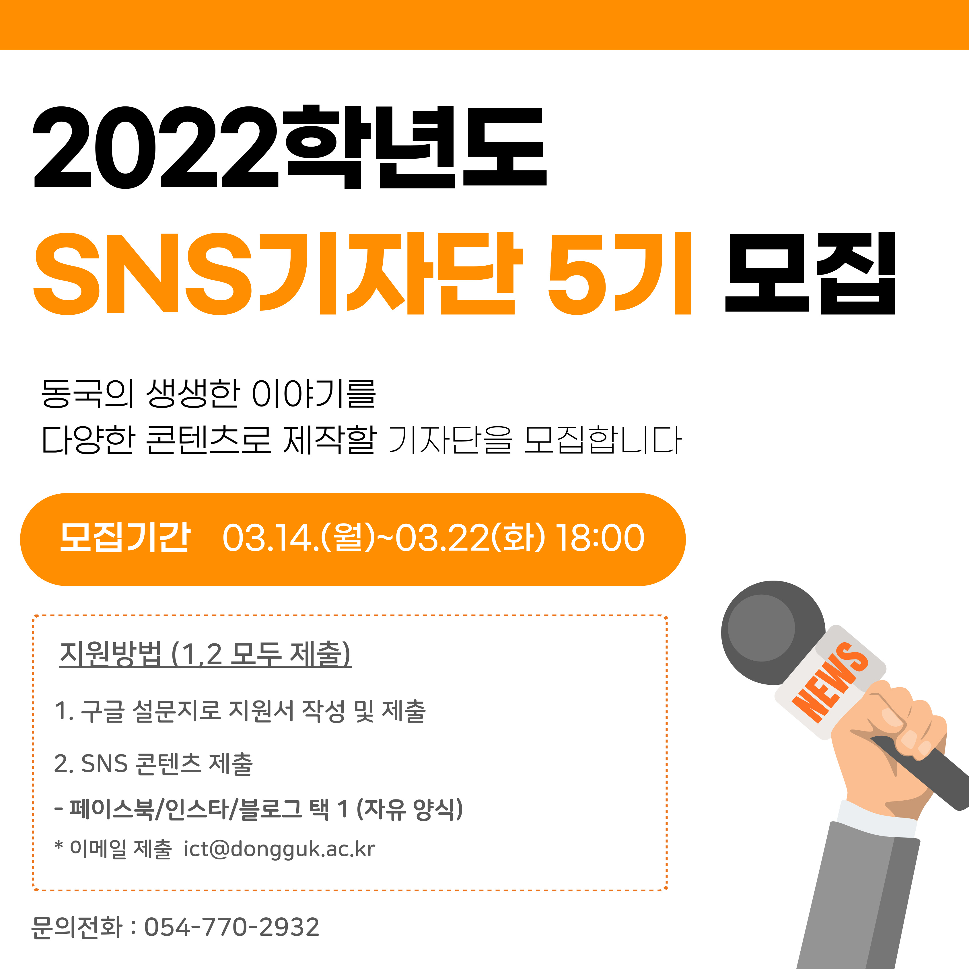 : 이메일 제출 ict@dongguk.ac.kr ※ 제출된 서류는 반환하지 않습니다.