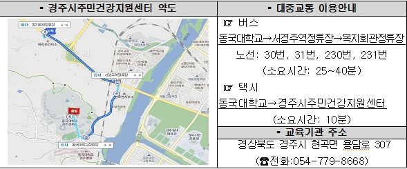 7. 경주지역 외부 교육기관(경주시주민건강지원센터) 가는방법