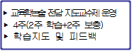 - 주요내용: 학습 효율 증대를 위하여 교육학논술 강의 집체수강 및 전담 학습 지도교수 를 지정하여