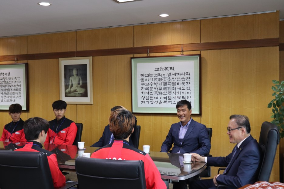 이대원 동국대 경주캠퍼스총장은 "훈련과 시합을 통해 상황에 긴밀하게 대처할 수 있는 정신력과 힘을 키우는 것은 매우 중요하고 하나의 교육의 일환이다. 공부와 운동을 겸해 24시간을 열심히 활동하여 지식의 폭을 넓혀 세계로 나아갔으면 좋겠다."고 선수들을 격려했습니다.